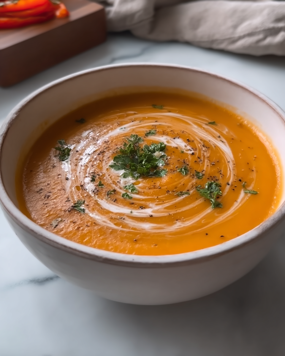 Warm up with this comforting creamy roasted veggie soup, packed with flavorful roasted vegetables, fresh herbs, and a luscious cream base. This rich soup is perfect for chilly days or as a starter to a cozy meal. It combines the sweetness of roasted veggies with the creaminess that makes every spoonful delightful. Ideal for family dinners or entertaining guests, this recipe stands out for its simplicity and flavor.