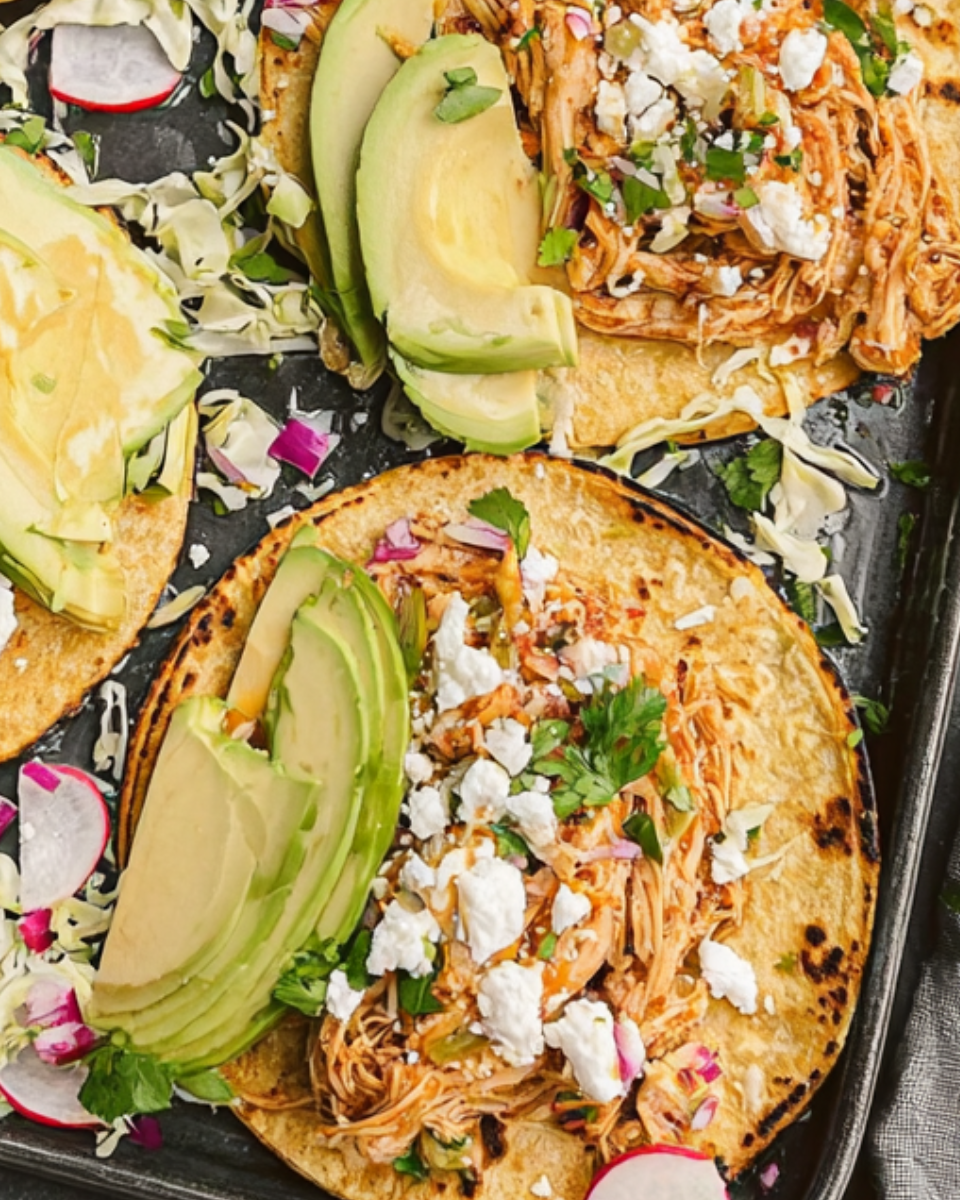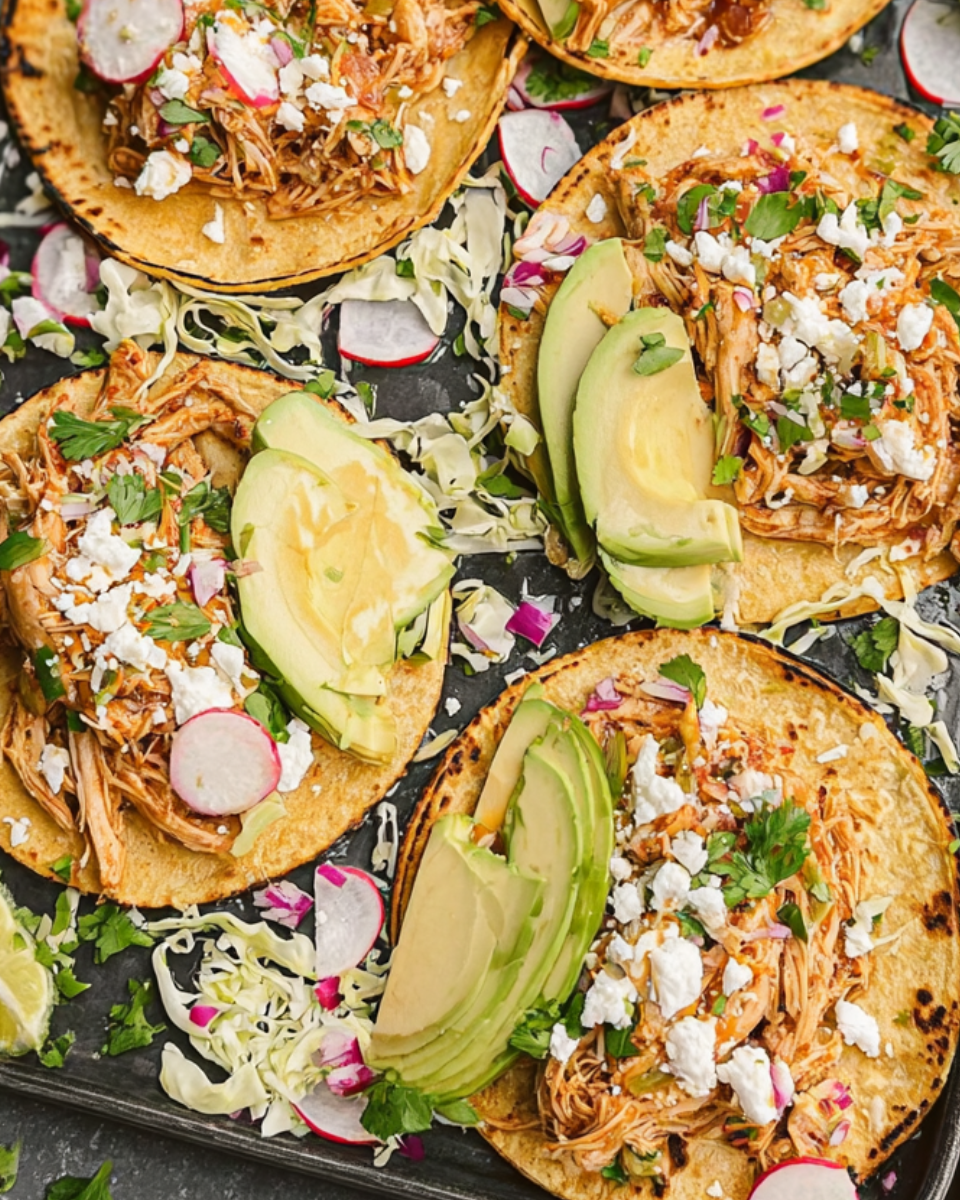 - Flour or Corn Tortillas: Use warm tortillas to hold the shredded chicken and toppings together.