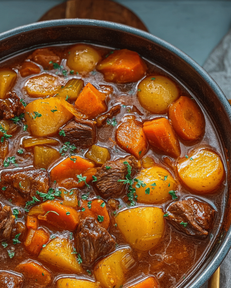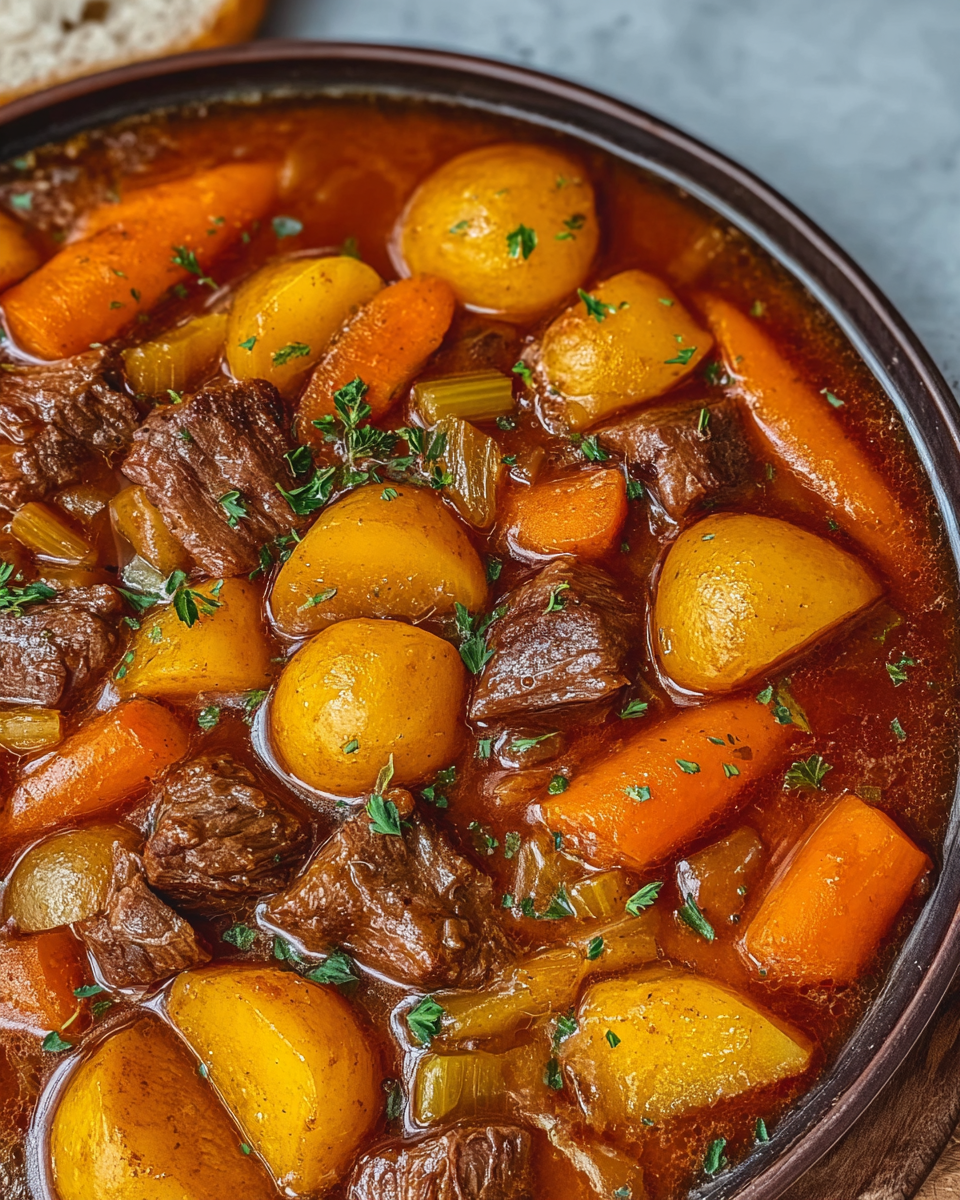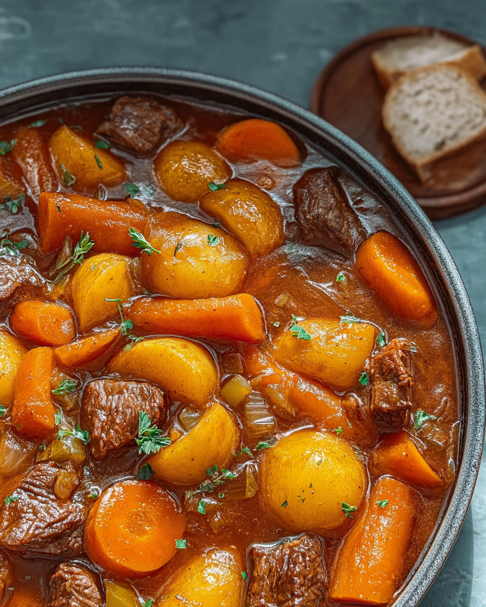 - Biscuit Topping: For a fun twist, serve the stew topped with fluffy biscuits for a hearty meal.