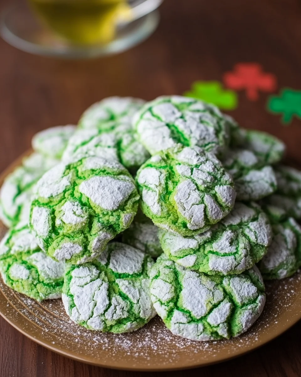 Celebrate St. Patrick’s Day with these delightful St. Patrick’s Day Green Crinkle Cookies! Bursting with color and flavor, these chewy cookies are coated in powdered sugar, creating a fun and festive treat perfect for parties or cozy gatherings. Their vibrant green hue and crinkly tops make them visually stunning, while their soft interior ensures they will be a hit with family and friends alike. Enjoy them with a cup of tea or package them as charming party favors. This easy recipe requires just a few ingredients and minimal effort, making it a must-try for your holiday baking!
