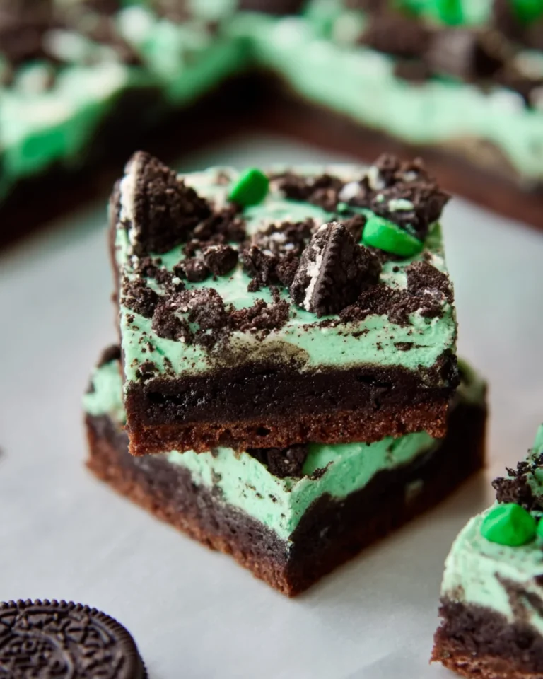 These St. Patrick’s Day Triple Layer Fudgy Mint Oreo Brownies feature a decadent fudgy base layered with a creamy mint Oreo filling and topped with rich chocolate ganache, making them truly indulgent.